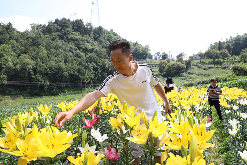 在修文縣廣城村,有一名返鄉(xiāng)創(chuàng)業(yè)青年范一帆,他用5年時(shí)間,從一名裝修工人轉(zhuǎn)型成為種植中藥材、獼猴桃產(chǎn)業(yè)的“新農(nóng)人”。他把青春書寫在家鄉(xiāng)的田間地頭,探索以家庭農(nóng)場(chǎng)模式助力鄉(xiāng)村振興路子?!斑@是藥用百合,它開的花是五顏六色的,顏值很高,非常美麗,有很高的觀賞價(jià)…